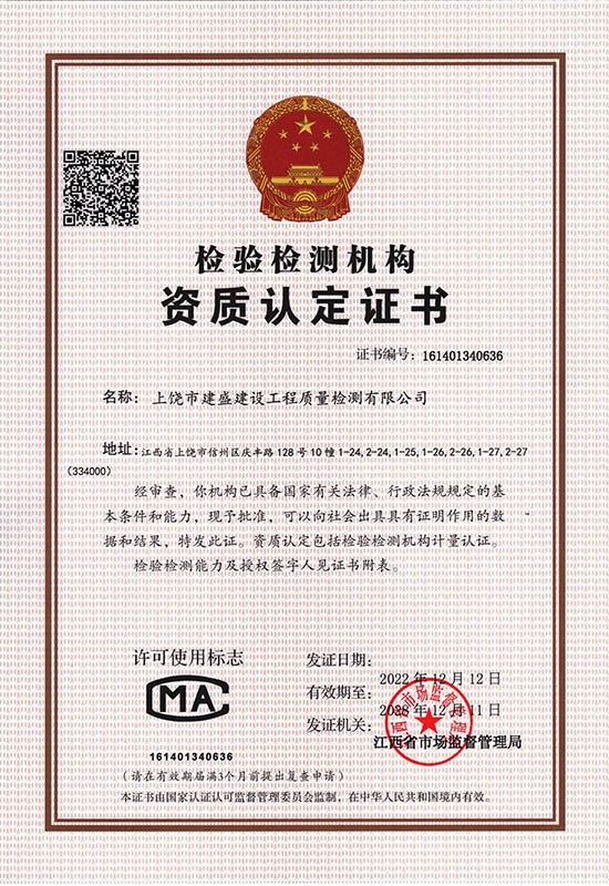 上饒市建盛建設(shè)工程質(zhì)量檢測(cè)有限公司